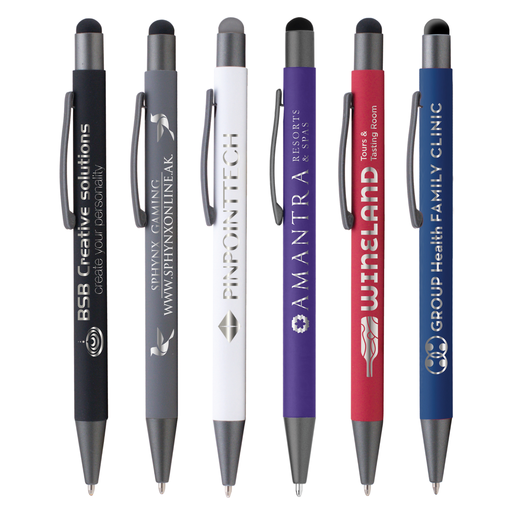 Der „Cape“ 2-in-1-Kugelschreiber besticht durch sein Soft-Touch-Gehäuse und auffällige anthrazitfarbene Designelemente. Wählen Sie zwischen einer edlen Spiegelglanzgravur oder einem Digitaldruck. Die dokumentenechte Premium-Großraummine mit hochwertiger deutscher Tinte (konform nach ISO 12757-1 und -2) sorgt für ein außergewöhnlich weiches Schreibgefühl. Sie ist in Blau oder Schwarz erhältlich und ermöglicht eine Schreiblänge von bis zu 1.600 Metern.