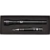 Nutzen Sie die Lasergravur, Tampondruck und Digitaldruck, um Ihr Logo sichtbar und unvergesslich zu platzieren. Das set in ansprechender Geschenkbox, kombiniert mit einer leistungsstarken Taschenlampe mit 3 LED-Lichtern, lässt Ihr Branding im besten Licht erstrahlen. Ihre Kunden werden dieses besondere Geschenk schätzen und lange Zeit daran denken.