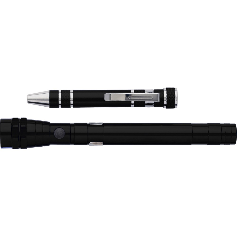 Gestalten Sie Ihre Marke mit unserem kompakten Werkzeugset mit Taschenlampe, einem unverzichtbaren Werbeartikel, der Eindruck hinterlässt! Mit einer praktischen Größe von Ø2,2 x 46 cm und vielseitigen Funktionen ist dieses Set nicht nur nützlich, sondern ein echter Alltagshelfer, der Ihren Kunden das Leben erleichtert. Die hochwertige Aluminium- und Kohlenstoffstahlkonstruktion sorgt für Langlebigkeit und Wertigkeit – eine perfekte Bühne für Ihre Marke.